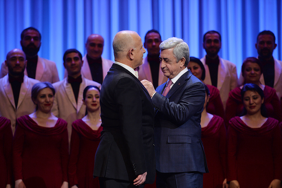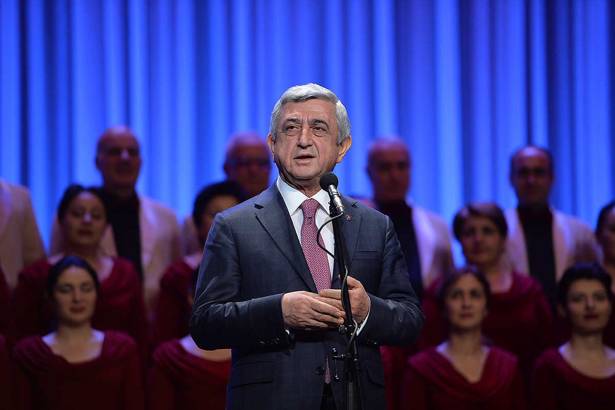 Ես մեկ անգամ ևս սրտանց շնորհավորում եմ Հայաստանի ազգային ակադեմիական երգչախմբին հիմնադրման 80-ամյակի կապակցությամբ: Ցանկանում եմ նրանց և նաև նրանց նախորդներին շնորհակալություն հայտնել 80 տարի մեր ժողովրդին ծառայելու համար: Ուզում եմ շնորհակալություն հայտնել մաեստրո Չեքիջյանին և շնորհավորել նրա վաստակաշատ աշխատանքի համար, նրա համար, որ 56 տարի մաեստրոն այսպիսի եռանդով ու սիրով ղեկավարում է այս ներդաշնակ կոլեկտիվը:
