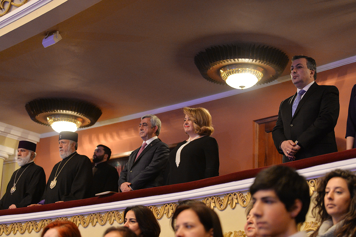 Նախագահ Սերժ Սարգսյանը և տիկին Ռիտա Սարգսյանն այսօր Ալ. Սպենդիարյանի անվան օպերայի և բալետի ազգային ակադեմիական թատրոնում ներկա են գտնվել Հայաստանի ազգային ակադեմիական երգչախմբի 80-ամյակին նվիրված համերգին: