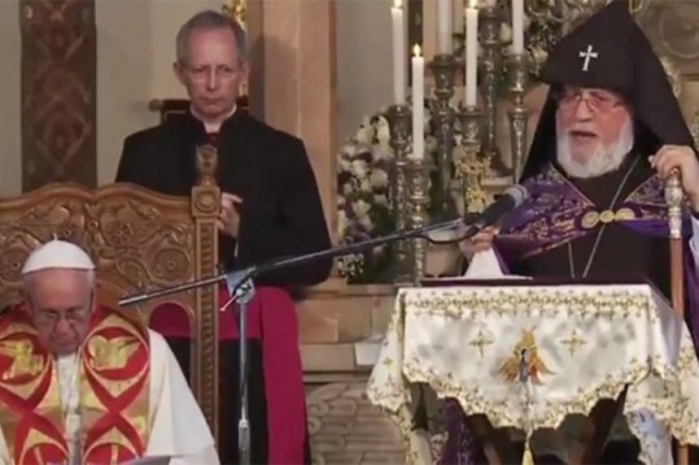 Մեր ժողովրդի զավակները երախտագիտությամբ են հիշում Սուրբ Պետրոս Մայր Տաճարում Հայոց ցեղասպանության զոհերի հիշատակին մատուցած Ձեր հանդիսավոր պատարագը՝ Ցեղասպանությունը դատապարտող պատմական ճառով: Գոհություն ենք հայտնում Աստծուն, որ այսօր այստեղ Ձերդ Սրբության, Կաթոլիկ Եկեղեցու զավակների, Ձեր այցի առիթով տարբեր երկրներից Հայաստան ժամանած բազմաթիվ հայորդյաց ու հայրենաբնակ մեր ժողովրդի հետ միասնաբար կարող ենք աղոթել և հայցել Հայոց ցեղասպանության սրբադասված նահատակների բարեխոսությունը, որոնց արյան վկայությունը ոչ միայն հայոց, այլ նաև քրիստոնեական ընդհանուր հավատքի հաղթանակի հավաստիքն է: Ինչպես առաքյալն է ասում՝ շատերի գոհությամբ առատացած շնորհը ավելանում է ի փառս Աստծո (Հմմտ. Բ Կորնթ. Դ15):