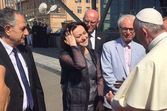 Հայ օպերային երգչուհի Հասմիկ Պապյանն ու կոմպոզիտոր Տիգրան Մանսուրյանը հանդիպել ու զրուցել են Հռոմի Ֆրանցիսկոս պապի հետ: Ֆեյսբուքյան իր էջում այս մասին գրառում է կատարել երգչուհին ու տեղադրել լուսանկար: «Աննկարագրելի զգացողություն է, երբ հայրենի հողի վրա ոտք դնելուց երեք ժամ հետո արժանանում ես այսօրինակ երջանկության: Աղոթքներդ առ Աստված, ի խաղաղություն և բարօրություն իմ տառապած ժողովրդի, մեծ մարդ և իրական քրիստոնյա»,-գրել է Հասմիկ Պապյանը:
