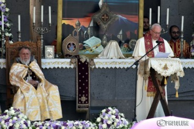 Ներկայացնում ենք Հռոմի պապի մասնակցությամբ Սուրբ պատարագի Սրբազան Քահանայապետ Ֆրանցիսկոսի Պապի խոսքը Մայր Աթոռ Սուրբ Էջմիածնում.«Ձերդ Սրբություն, հույժ սիրելի եպիսկոպոսներ, սիրելի եղբայրներ և քույրեր, այս հույժ ցանկալի և ինձ համար արդեն անմոռանալի այցի գագաթնակետին, ուզում եմ Տիրոջն ուղղել իմ շնորհակալությունը՝ այն միացնելով այս սեղանից բարձրացած փառաբանական և գոհաբանական մեծ աղոթքին: