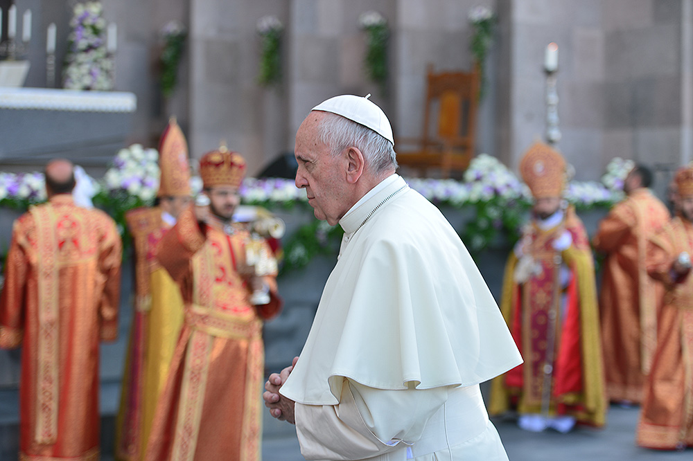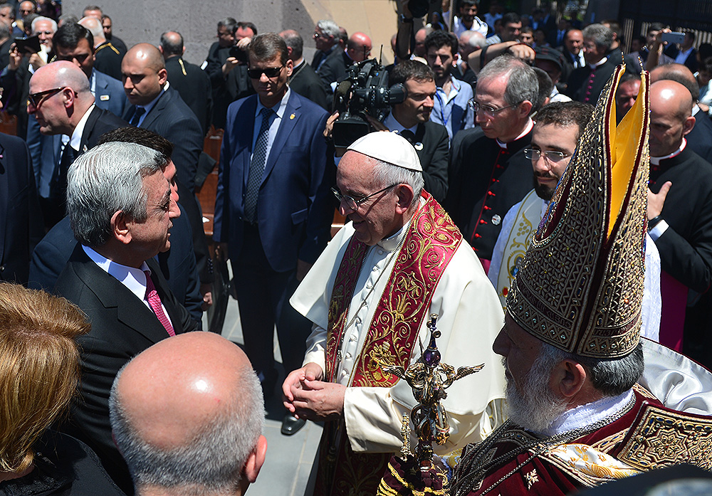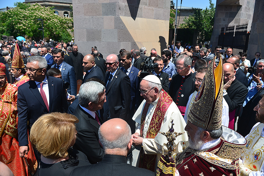 Նախագահ Սերժ Սարգսյանը տիկնոջ հետ այսօր Մայր Աթոռ Սուրբ Էջմիածնում ներկա է գտնվել Ն.Ս.Օ.Տ.Տ. Գարեգին Բ Ամենայն Հայոց Կաթողիկոսի կողմից Մայր Աթոռի Սուրբ Տրդատի բաց խորանում մատուցված Սուրբ Պատարագին` աղոթական մասնակցությամբ Հռոմի Սրբազան Քահանայապետ Ֆրանցիսկոս Պապի: