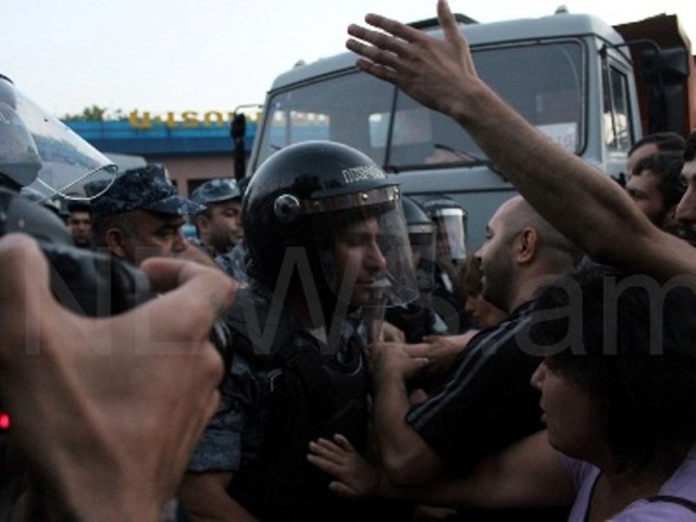 Սարի թաղի կողմից քաղաքացիներ են եկել, փորձել են մուտք գործել պահպանվող տարածք։ Նրանք նաեւ քարեր եւ տարբեր առարկաներ են նետել ոստիկանների ուղղությամբ: