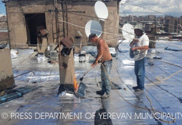 Երևանի քաղաքապետարանի, վարչական շրջանների և համատիրությունների տարեկան ծրագրով մայրաքաղաքի վարչական շրջաններում շարունակվում են բազմաբնակարան շենքերի հարթ և թեք տանիքների նորոգման աշխատանքները:
