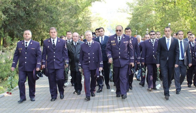 Հատուկ քննչական ծառայության աշխատակիցները ծաղիկներ մեկուկես միլիոն սուրբ նահատակների հիշատակը հավերժացնող անմար կրակի մոտ` մեկ րոպե լռությամբ հարգելով նրանց հիշատակը: