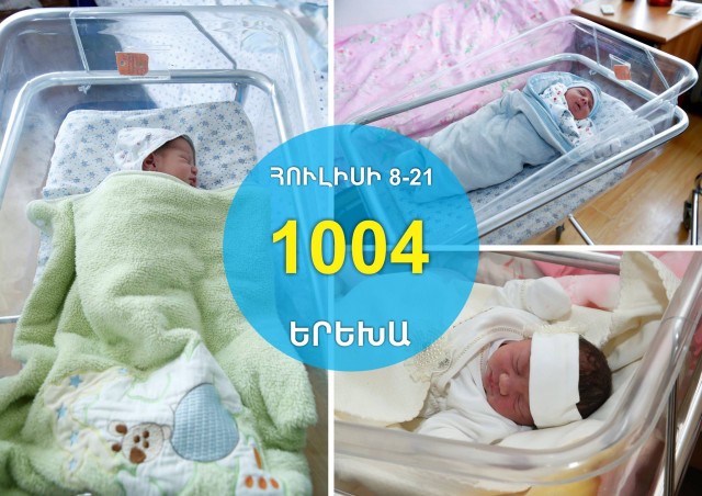 Երևանի քաղաքապետարանի աշխատակազմի առողջապահության վարչությունից հայտնում են, որ հուլիսի 8-21-ը մայրաքաղաքի ծննդատներում լույս աշխարհ է եկել 1004 երեխա՝ 506 տղա, 498 աղջիկ: