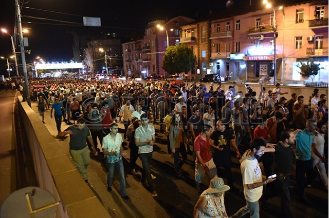 Երթը Ազատության հրապարակից հասել է Խորենացի փողոց, որտեղ ոստիկանությունը նախորդ օրերից մի քանի անգամ ավելի շատ ուժեր է կենտրոնացրել։ Ոստիկանները զինված են վահաններով, մահակներով, սաղավարտներով։