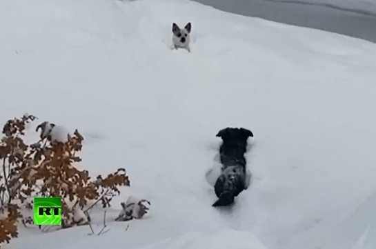 Ամերիկյան Կոլորադո նահանգում արված տեսանյութում երևում է, թե ինչպես է փոքրիկ շունը փորձում ազատվել ձնե գերությունից: