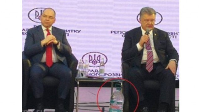 Ինտերնետի օգտատերերը ծաղրել են Ուկրաինայի նախագահ Պետրո Պորոշենկոյի լուսանկարը, որում նրա կողքին դրված է 5 լիտր տարողությամբ ջրի շիշ: Այս մասին տեղեկանում ենք Gazeta-ից։ Որոշ օգտատերեր գրել են, որ Ուկրաինայի ղեկավարին այդքան ջուր է անհրաժեշտ եղել ալկոհոլից հետո առաջացած խումհարի պատճառով։ Ըստ տեղեկությունների, նկարն արվել է Օդեսայի շրջանի տարածքային զարգացման խորհրդի նիստի ժամանակ։ Սոցիալական ցանցի օգտատերերն ուշադրություն են դարձրել, որ լուսանկարում Խորհրդի մյուս անդամներից ոչ մեկի կողքին նման մեծ շիշ չկա: