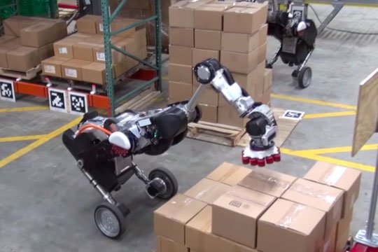 Տեսագրությունում երևում է, թե ինչպես են ռոբոտները բարձրացնում տուփերը և այլ տեղ տեղափոխում՝ պոչին հատուկ բեռների միջոցով հավասարակշռությունը պահպանելով։