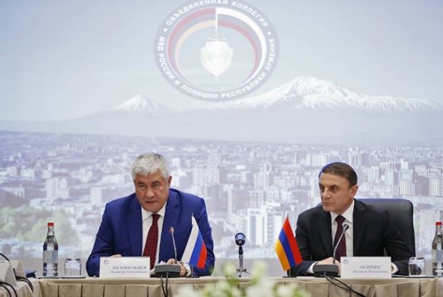 Ռուսաստանի Դաշնության ներքին գործերի նախարարության և Հայաստանի Հանրապետության ոստիկանության Միավորված կոլեգիայի Երևանում հունիսի 3-ին կայացած նիստին մասնակցելու համար Հայաստան է ժամանել Ռուսաստանի Դաշնության ՆԳՆ պատվիրակությունը՝ ՌԴ ՆԳ նախարար Վլադիմիր Կոլոկոլցևի գլխավորությամբ: Օդանավակայանում պատվիրակությանը դիմավորել է Հայաստանի Հանրապետության ոստիկանության պետ Վալերիյ Օսիպյանը և կոլեգիայի անդամները: Ինչպես «Արմենպրես»-ին տեղեկացրին ՀՀ ոստիկանության հասարակայնության հետ կապերի և լրատվության վարչությունից, Միավորված կոլեգիայի նիստին բացման խոսքով հանդես են եկել ՀՀ ոստիկանության պետ Վալերիյ Օսիպյանն ու ՌԴ ներքին գործերի նախարար Վլադիմիր Կոլոկոլցևը: Նիստին մասնակցել են Միավորված կոլեգիայի անդամներ, գերատեսչությունների կենտրոնական ապարատների վարչությունների պետեր, իրավապահ երկու կառույցների այլ բարձրաստիճան ներկայացուցիչներ, ինչպես և ԱՊՀ մասնակից պետությունների տարածքում կազմակերպված հանցավորության և այլ վտանգավոր հանցատեսակների դեմ պայքարի համակարգող բյուրոյի տնօրեն Օլեգ Կոնովալովը: