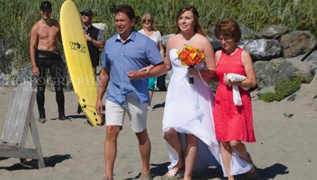 Սերֆերները հաճախ են հայտնվում լուսանկարներում, որոնք արվում են լողափնյա հարսանիքների ժամանակ, սակայն կիսամերկ Թրյուդոն գրեթե բոլորի ուշադրությունն իր վրա է հրավիրել։