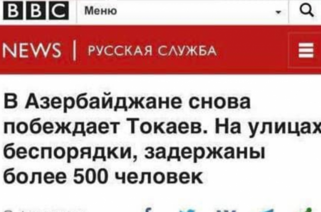 BBC-ի ռուսական ծառայությունը Ղազախստանը շփոթել է Ադրբեջանի հետ և Ղազախստանում կիրակի անցկացված արտահերթ նախագահական ընտրությունների մասին նյութը վերնագրել «Ադրբեջանում կրկին հաղթում է Տոկաևը. Փողոցներում անկարգություններ են, բերման է ենթարկվել ավելի քան 500 մարդ»: