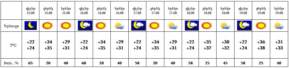 Երևանում օգոստոսի 15-19-ը սպասվում է առանց տեղումների եղանակ:
