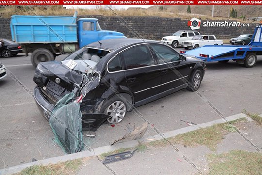 Ինչպես դեպքի վայրից հայտնում է shamshyan.com-ը բախումից հետո բեռնատարի վարորդը հարվածել է քարերին։