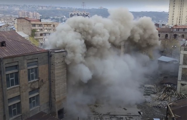 «Ճիշտ է, դա հին շենք էր, բայց հուշարձանների ցանկում չկար ու սպառված էր: Ինչքան գիտեմ, դրա որոշ մասը մնալու է»,-շեշտեց Ճարտարապետների միության նախագահը: Մեր տարակուսանքին` ինչպե՞ս է մնալու, երբ արդեն պայթեցվել է, Մկրտիչ Մինասյանը պատասխանեց. « Նրա որոշ մասին՝ դեպի Ալավերդյանի կողմը, չեն կպել, կարող եք գնալ-նայել: Կարծեմ այդ մասը ինտեգրելու են նոր կառուցվող հյուրանոցին: Այդ շենքը հուշարձանների ցանկում չի, ու էնպես չի, որ մի ծրագիր կար, որի համաձայն թեեւ շենքը սպառված է, բայց չի քանդվում: Ինչքան գիտեմ, «առաջին տպարանի» մի մասը, այնուամենայնիվ, մնալու է»: