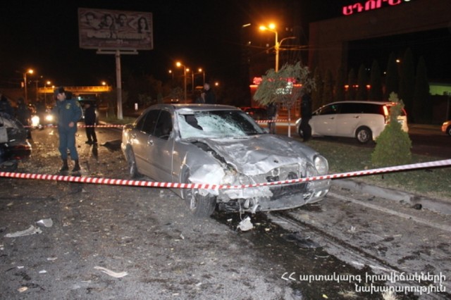 Պարզվել է, որ հանգամանքներում բախվել են «Mercedes E320» մակնիշի 91 UF 091 պ/հ (վարորդ` 1991 թ. ծնված Մ. Հ.), «Mercedes A 160» մակնիշի (վարորդ` 1981 թ. ծնված Մ. Մ.) 30 AV 505 պ/հ և «Opel Vectra» մակնիշի 34 FR 516 պ/հ ավտոմեքենաները: 1981 թ. ծնված Մ. Մ.-ը, 1989 թ. ծնված Ա. Բ.-ը, 1986 թ. ծնված Գ. Կ.-ը, 1996 թ. ծնված Բ. Կ.-ը և 1981 թ. ծնված Մ. Կ.-ը, 1987 թ. ծնված Ա. Մ.-ը և 2013 թ. ծնված Ա. Կ.-ը հոսպիտալացվել են «Արմենիա» ՀԲԿ, այնուհետև Ա. Մ.-ը և Մ. Մ.-ը ստանալով համապատասխան բուժօգնություն՝ դուրս են գրվել, իսկ Ա. Կ.-ը տեղափոխվել է «Սուրբ Աստվածամայր» ԲԿ: