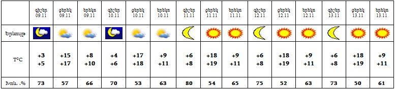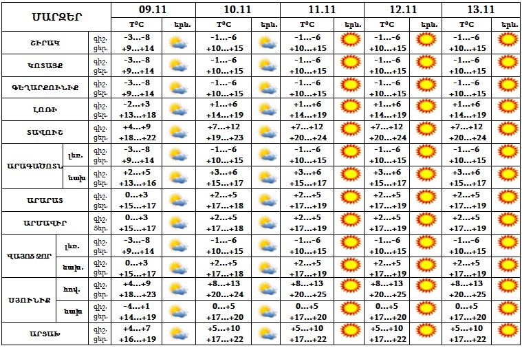 Նոյեմբերի 9-13-ը սպասվում է առանց տեղումների եղանակ: