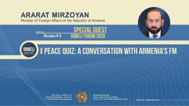 Նոյեմբերի 5-ին ՀՀ ԱԳ նախարար Արարատ Միրզոյանը կմասնակցի Օրբելի վերլուծական կենտրոնի կողմից կազմակերպված համաժողովին՝ «Խաղաղության քուիզ. զրույց Հայաստանի արտաքին գործերի նախարարի հետ» խորագրի ներքո: Այս մասին տեղեկանում ենք ԱԳՆ-ից։