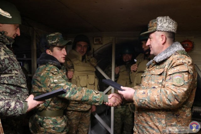 ՀՀ պաշտպանության նախարարի 1-ին տեղակալ, ԶՈՒ ԳՇ պետ, գեներալ-լեյտենանտ Էդվարդ Ասրյանը գալիք տոների կապակցությամբ անձնակազմին շնորհավորելու նպատակով այցելել է հանրապետության արևելյան սահմանագոտի: Զորամիավորման հրամանատար, գեներալ-մայոր Գարեգին Պողոսյանի ուղեկցությամբ ԶՈՒ ԳՇ պետն այցելել է մի շարք բանակային դիրքեր, զրուցել հերթապահություն իրականացնող զինանձնակազմի հետ և նրանց հանձնել արժեքավոր նվերներ: Գեներալ-լեյտենանտ Ասրյանը շնորհավորել է զինծառայողներին գալիք տոների առթիվ, հղել նրանց լավագույն բարեմաղթանքները