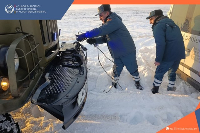Հունվարի 7-ի ժամը 08։00-ից մինչև հունվարի 10-ը ժամը 08։00-ն ՆԳՆ ՓԾ Ճգնաժամային կառավարման ազգային և մարզային փրկարարական վարչությունների ճգնաժամային կառավարման կենտրոններ ահազանգեր են ստացվել ձյան առատ տեղումների հետևանքով տրանսպորտային միջոցների արգելափակումների վերաբերյալ։ ՓԾ ստորաբաժանումները օպերատիվ արձագանքելով իրավիճակին Ոստիկանության պարեկային ծառայության, ՏԻՄ ներկայացուցիչների և «ՃԱՆՇԻՆ»-ի աշխատակիցների հետ համագործակցելով արգելափակումից դուրս են բերել 54 տրանսպորտային միջոց և 84 քաղաքացու ցուցաբերել համապատասխան օգնություն: