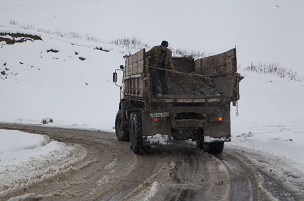 Նշված ճանապարհներին ճանապարհաշինարարները կատարում են մաքրման, աղով, ավազով մշակման աշխատանքներ: