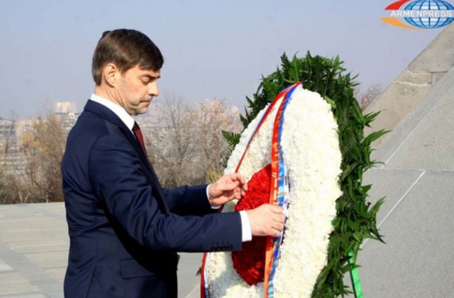 Պետդումայի փոխխոսնակ, «Եդինայա Ռոսիա» կուսակցության փոխնախագահ Սերգեյ Ժելեզնյակի գլխավորած պատվիարկությունը այցելեց Հայոց ցեղասպանության զոհերի հիշատակը հավերժացնող հուշահամալիր: Դեպի զոհերի հիշատակը հավերժացնող անմար կրակի մոտ պատվիրակության անդամներին ուղեկցեց Հայոց ցեղասպանության թանգարան-ինստիտուտի փոխտնօրեն Սուրեն Մանուկյանը` ներկայացնելով Հայոց ցեղասպանության, հուշահամալիրի ստեղծ ան պատմությունը: Ծաղկեպսակ դնելով հուշահամալիրի մոտ` պատվիրակության անդամները մեկ րոպե լռությամբ հարգեցին 1915 թվականի Հայոց ցեղասպանության զոհերի հիշատակը: