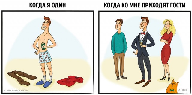 Երբ մենք տանը միայնակ ենք մնում, մեզ այլ կերպ ենք պահում, քան այլ մարդկանց ներկայությամբ։ Երբ մեզ ոչ ոք չի տեսնում, մենք կարող ենք անել այն ամենը, ինչ մեր սիրտն է ուզում։