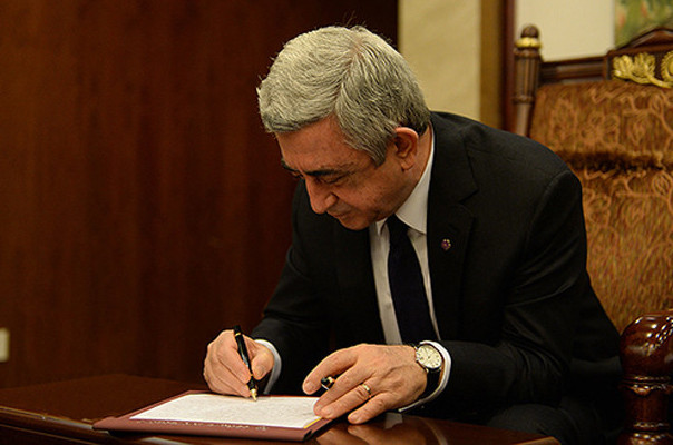 Նախագահ Սերժ Սարգսյանը ստորագրել է Ազգային ժողովի ընդունած «Հայաստանի Հանրապետության քաղաքացիական օրենսգրքում լրացումներ կատարելու մասին», «Իրավաբանական անձանց պետական գրանցման, իրավաբանական անձանց առանձնացված ստորաբաժանումների, հիմնարկների և անհատ ձեռնարկատերերի պետական հաշվառման մասին» ՀՀ օրենքում լրացումներ կատարելու մասին, «Պետական տուրքի մասին» ՀՀ օրենքում լրացումներ կատարելու մասին ՀՀ օրենքները: