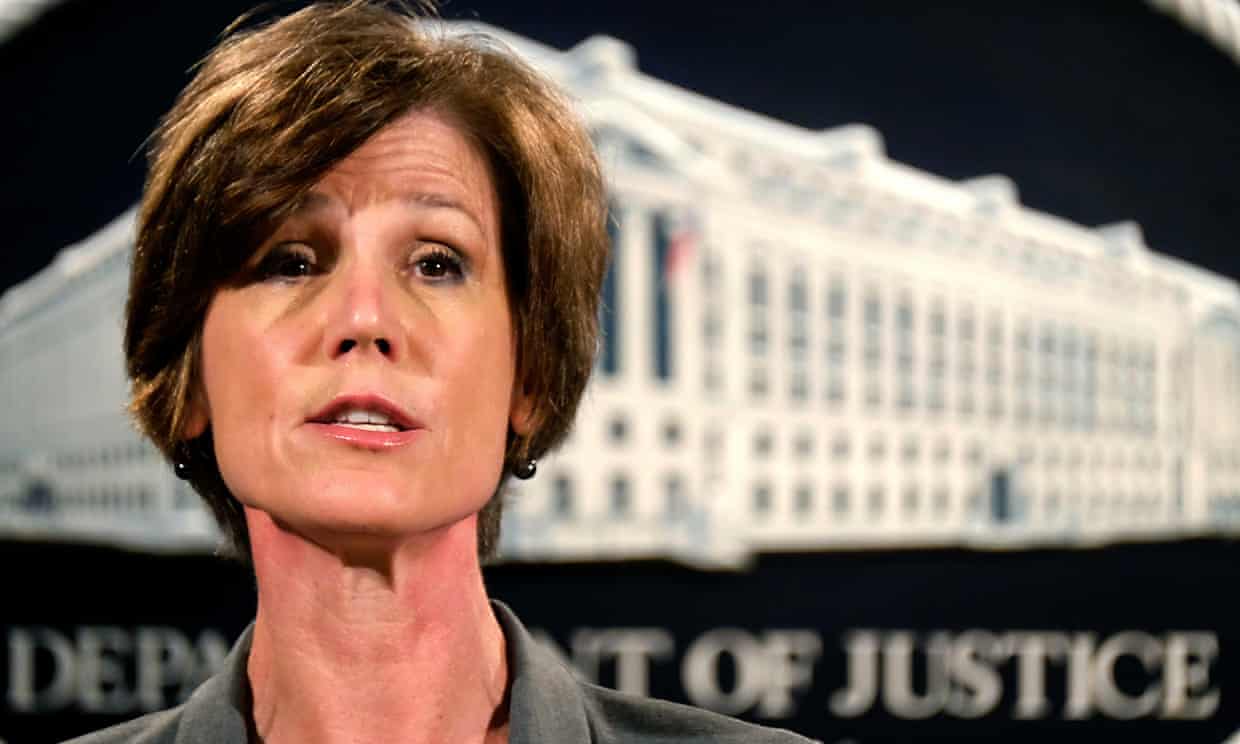 «Գլխավոր դատախազի պաշտոնակատար Սալի Յեյթսը դավաճանել է Արդարադատության նախարարությանը՝ հրաժարվելով ի կատար ածել օրինական հրամանը, որն ուղղված է Միացյալ Նահանգների քաղաքացիների պաշտպանությանը»,- ասված է Սպիտակ տան հայտարարությունում։