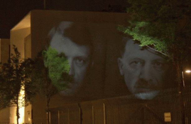 The Independent-ը գրում է, որ Բեռլինում Թուրքիայի դեսպանատան շենքի վրա հայտնվել է Թուրքիայի նախագահ Ռեջեփ Թայիփ Էրդողանի պատկերը` Ադոլֆ Հիտլերի կերպարով: