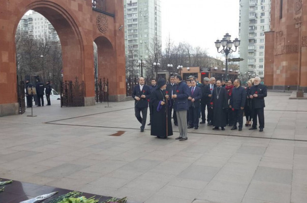 ՌԴ-ում ՀՀ դեսպան Վարդան Տողանյանը և Ռուսաստանի ու Նոր Նախիջևանի Հայոց թեմի առաջնորդ Եզրաս արքեպիսկոպոս Ներսիսյանն այսօր ծաղիկներ են դրել ՀԱԵ Եկեղեցական համալիրի տարածքում գտնվող Հայոց ցեղասպանության զոհերի հիշատակին նվիրված հուշարձանի մոտ։