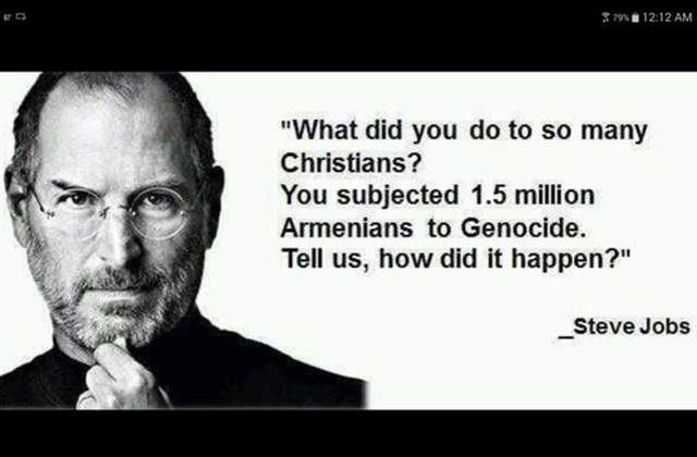 «Դուք ցեղասպանել եք 1.5 միլիոն հայերի: Պատմեք մեզ, թե ինչպե՞ս է դա եղել»,- հարցրել է Ջոբսը: