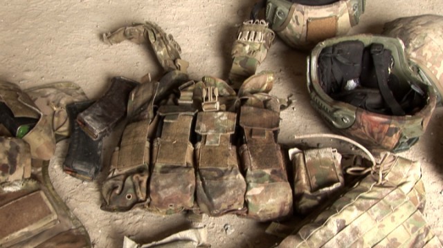 Ադրբեջանական զինուժի կողմից մարտադաշտում թողնված հատուկ նշանակության ջոկատի զինծառայողների համար նախատեսված համազգեստի, կապի միջոցների և զինամթերքի պարագաներ: