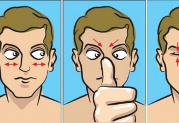 • Ուղեք հայացքը աջ աչքի ներքին անկյունից ու ձախ աչքի արտաքին անկյունից դեպի աջ աջքի վերին անկյուն, որից հետո ձախ աջքի ներքին անկյուն:Որից հետո կատարեք այդ նույն վարժությունը, սակայն այլ ուղղությամբ: