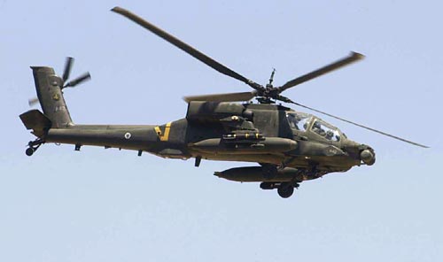 "Апач" может быть вооружен 16 противотанковыми ракетами Hellfire или 70 неуправляемыми ракетами калибра 70 миллиметров, а также автоматической пушкой калибра 30 миллиметров.