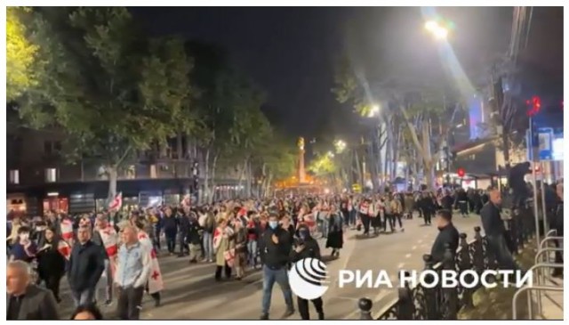 Грузинский спецназ уже вытеснил водометом митингующих с площади Орбелиани у президентского дворца в Тбилиси. Манифестанты перемещаются с площади Свободы в сторону здания парламента по проспекту Руставели, присоединяясь к остальным участникам акции.