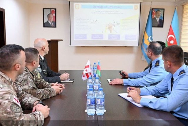 Грузинской делегации «рассказали о деятельности БПЛА в азербайджанской армии, их применении в боевых операциях, организации боевых вылетов и тенденциях развития беспилотных летательных аппаратов».