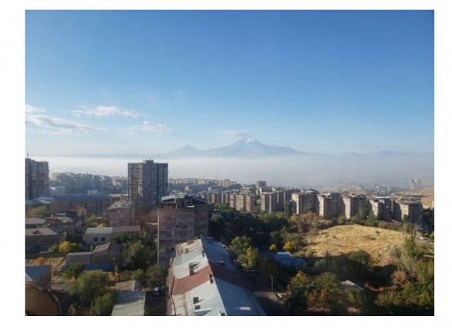 Активист Эдуард Айрумян опубликовал фотографию и написал: «Наверху облака, а «туман» внизу — это дым от горящей Нубарашенской свалки».