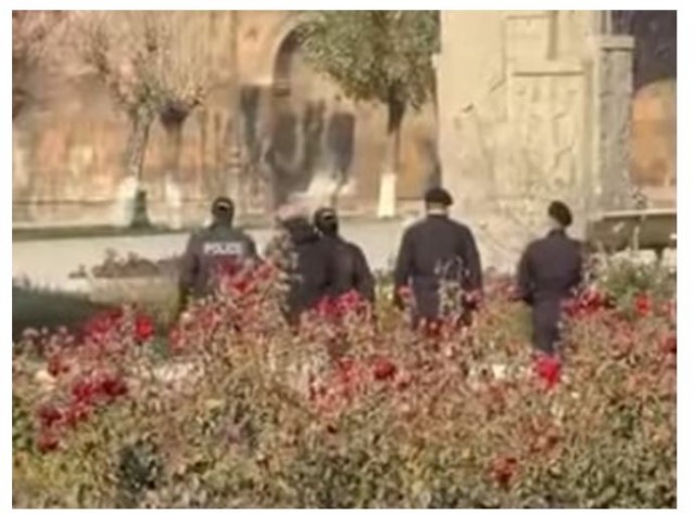 В эти минуты на территории Первопрестольного Святого Эчмиадзина несут службу сотрудники полиции.