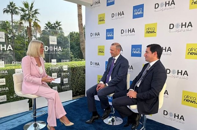 Секретарь Совета безопасности Армении Армен Григорян и помощник президента Азербайджана Хикмет Хаджиев дали совместное интервью телеканалу Euronews в Дохе, где принимали участие в международной конференции.