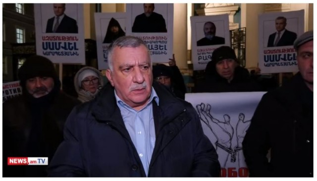 Участник акции протеста Ваан Бабаханян зачитал текст заявления представителей армянской общины. «22 декабря 2025 года состоялось собрание, в ходе которого единогласно принято заявление. Участники встречи выражают свой протест против жесткого, необоснованного давления, оказываемого на Армянскую апостольскую церковь, духовенство, благочестивых мирян, благотворителей и инакомыслящих в целом, которое ведет к расколу общественного сознания в Армении и диаспоре», - говорится в заявлении.