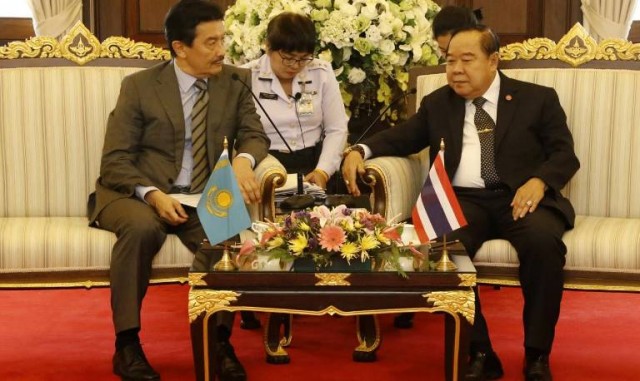 1 июня 2016 г. в г. Бангкоке Посол Республики Казахстан Марат Есенбаев провел встречу с заместителем Премьер-министра – Министром обороны Королевства Таиланд Правитом Вонгсувоном.