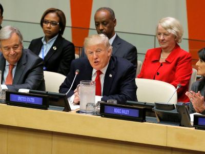 Թրամփը ՄԱԿ-ին քննադատել է բյուրոկրատիայի ու կառավարման անկատար ոճի համար, կոչ անելով իրականացնել բարեփոխումներ, որպեսզի կազմակերպությունը դառնա խաղաղության ապահովման ավելի հզոր ու արդյունավետ ուժ։ Նախագահը շեշտել է, որ անհրաժեշտ է այնպես անել, որ կազմակերպության անդամներից ոչ մեկը չկրի ֆինանսական բեռի անհամաչափ մասնաբաժին։ Թրամփը նաեւ հայտնել է, որ ՄԱԿ-ը չպետք է կառչի հին մեթոդներինց, որոնք ժամանակակից աշխարհում արդյունավետ չեն։