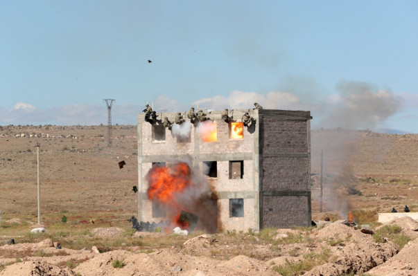 Զորավարժության մեկ այլ սցենարի համաձայն՝ դիվերսիոն և ահաբեկչական գործողությունների հետևանքով ավերվել է շենքի սանդուղքը, կային պայմանական տուժածներ, որոնցից երկուսն արգելափակվել էին շենքի վերին հարկում: Դեպքի վայր են մեկնում որոնողափրկարարական և աղետների բժշկության արագ արձագանքման խմբերը: Տուժածներին տեղում ցուցաբերվում է առաջին օգնություն և կազմակերպվում շինությունից նրանց դուրսբերումը:
