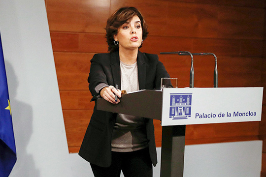 Իսպանիայի վարչապետ Մարիանո Ռախոյը կառավարության փոխնախագահ Սորայե Սաենս դե Սանտամարիային հանձնարարել է ղեկավարել Կատալոնիայի ժեներալիտետը: Այս մասին հայտնում է lavanguardia.com-ը: