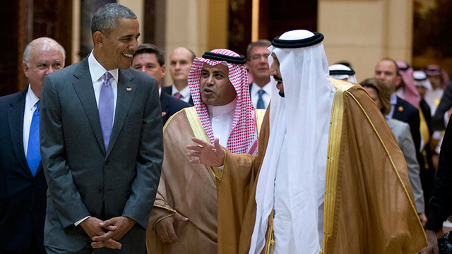 Էր Ռիյադայում Բարաք Օբամային բավականին զուսպ և սառը ընդունելություն են ցուցաբերել: The Guardian-ը նշում է, որ Սաուդյան Արաբիայի թագավորը Սալման Բին Աբդուլ Ազիզ Ալ-Սաուդը հրաժարվել է դիմավորել ԱՄՆ առաջնորդին օդանավակայանում և իր փոխարեն մի փոքր պատվիրակություն է ուղարկել: Նա ողջունել է Օբամային Էրգա պալատում, որտեղ էլ կայացել է երկկողմ հանդիպումը: Բացի այդ, անգամ տեղական հեռուստատեսությունները չեն լուսաբանել Օբամայի այցը: Թագավորի հետ հանդիպման ժամանակ ԱՄՆ նախագահը նկատելիորեն լարված է եղել: Ինչպես նշում է The New York Times-ը, հարաբերությունների վատթարացման նոր գործոն են հանդիսացել 2001թ. սեպտեմբերի 11-ի դեպքերին առնչվող փաստաթղթերի հրապարակման մասին քննարկումները: Այդ փաստաթղթերը այժմ համարվում են «գաղտնի» և պահվում են Սպիտակ տանը, իսկ վարչակազմը մտածում է դրանք հասանելի դարձնել բոլորին: