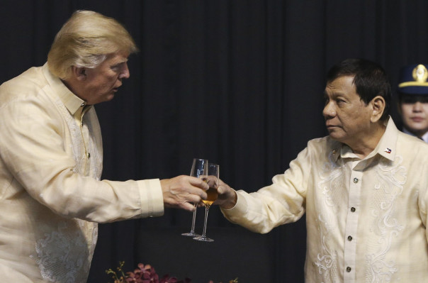 Ֆիլիպինների նախագահ Ռոդրիգո Դուտերտեն Միացյալ Նահանգների ղեկավար Դոնալդ Թրամփի «պահանջով» երգել է Հարավարևելյան Ասիայի պետությունների ասոցիացիայի 31-րդ գագաթնաժողովի գալա-ընթրիքի ժամանակ: