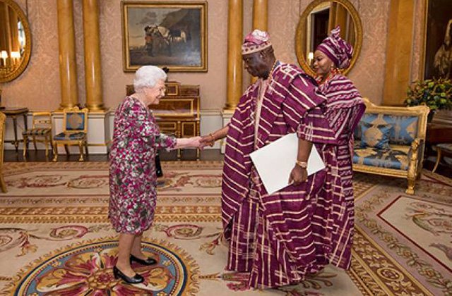 Մեծ Բրիտանիայի Եղիսաբեթ Երկրորդ թագուհին անսովոր հանդերձանքով է եկել Նիգերիայի դեսպանի եւ նրա տիկնոջ հետ հանդիպմանը, նա եղել է մուգ կարմիր գույնի զգեստով՝ ծաղիկների տեսք ունեցող պրինտով: