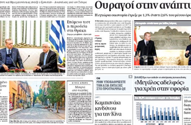 Մասնավորապես «Kathimerini» թերթը Էրդողանի և Հունաստանի վարչապետ Ալեքսիս Ցիպրասի հանդիպման մասին լուրը վերնագրել է հետևյալ կերպ՝ «Երկօրյա լարվածություն, թուրք ղեկավարը մի շարք պահանջներ առաջադրեց»: Թերթը գրել է, որ Էրդողանը հույն պաշտոնյաների հետ չափազանց պահանջկոտ էր մասնավորապես ռազմական հեղաշրջման փորձից հետո Հունաստան փախած զինվորականների արտահանձման հարցում: